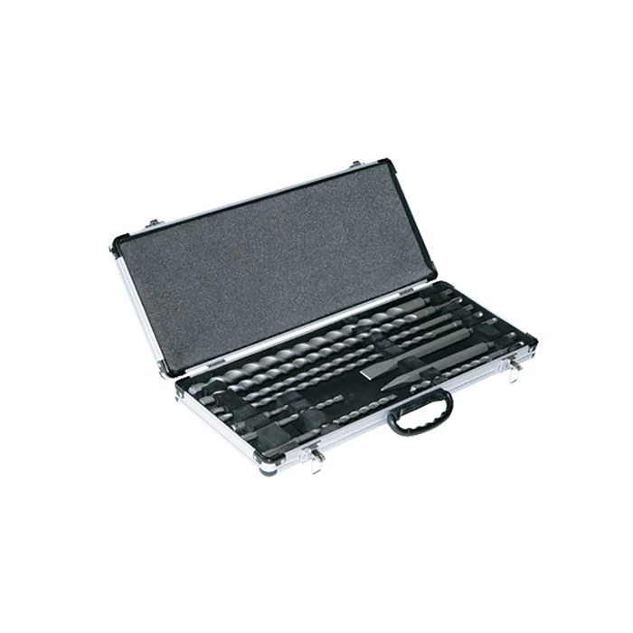 10-delige boor-/beitelset met SDS-PLUS aansluiting in aluminium koffer.
