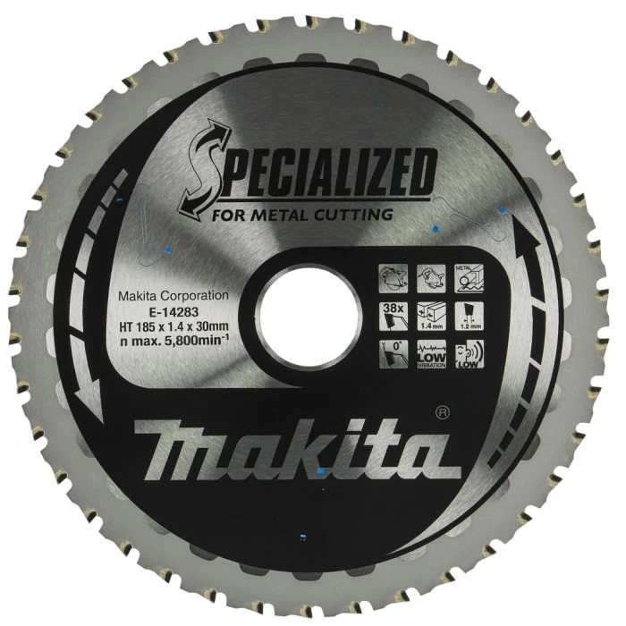 Extra informatie EAN barcode0088381593656 Past op4131,CS002GZ Stuks per verpakking1 MateriaalHM-TCT [Hard Metal Tungsten Carbide Tip] Aantal tanden38 VertandingTCG Tand dikte1,4 mm Tand Hoek0 Max. toerental5800 min-1 Diameter zaagblad185 mm