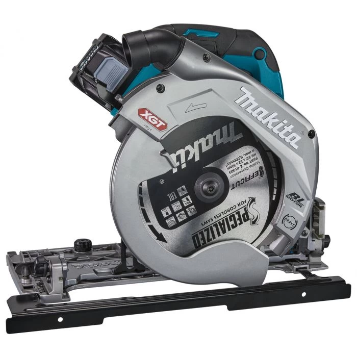 De machine past zonder adapter rechtstreeks op de Makita geleiderail.