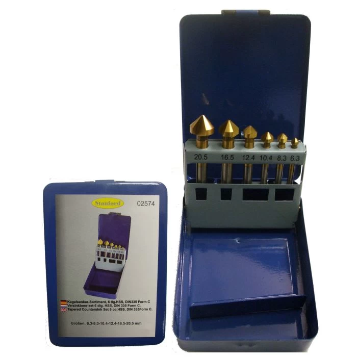 Een assortiment verzinkboren in een handige stevig metalen kistje.